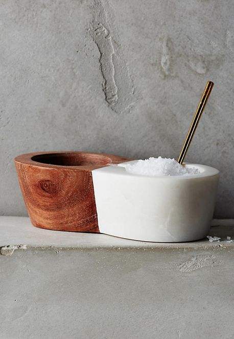 Set Of 2 Kitchen Ware Sugar and Salt Bowls With Wooden Lids Finest Quality Custom Size Designer Solid Marble Kitchen Utensils