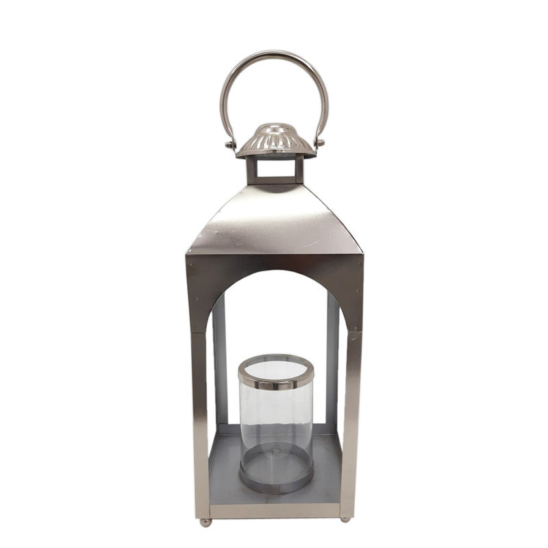 Set Of 2 Large Size Iron & Glass Lantern With Handle Silver Color Lantern For Wedding & Festival Decoration Customized