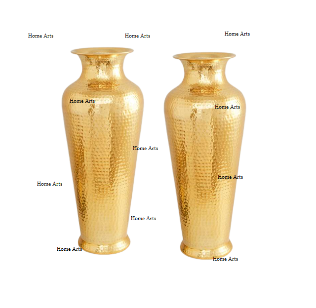 Set Of 2 Latest Design Flower Vase Brass Hammered Gold Color Flower Vase Customized Size Round Shape Vase