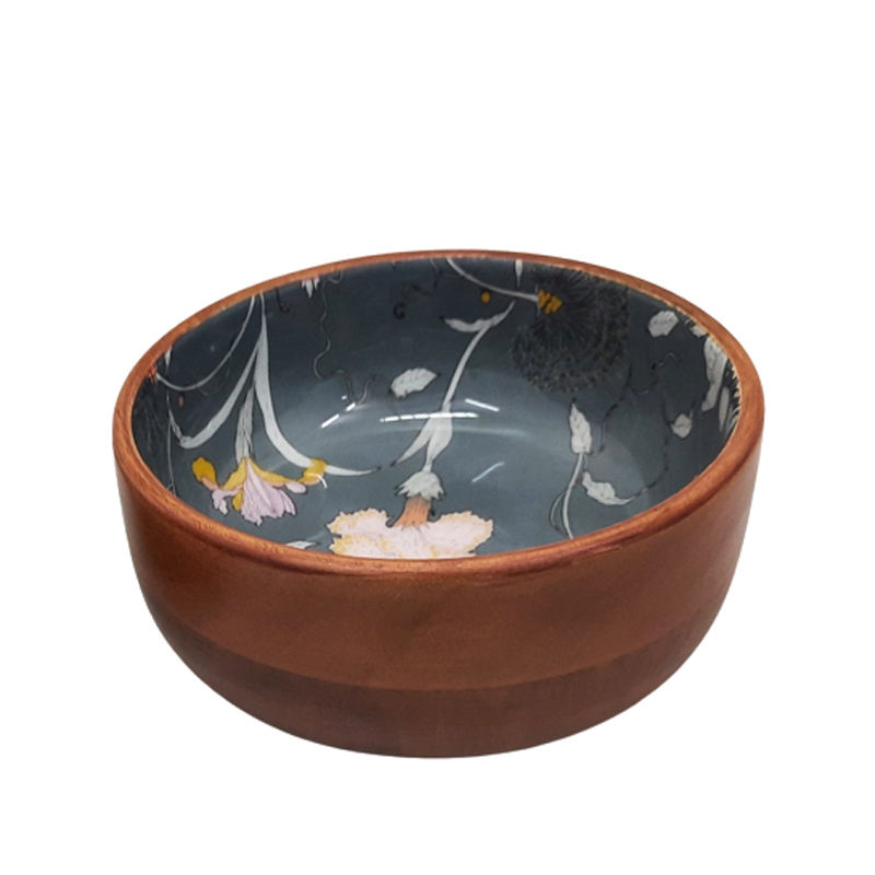 Small Size Round Mango Wood Ramen Bowl Set of 2 in White & Natural Colours for Kitchen & Table Top Decoration for Parties