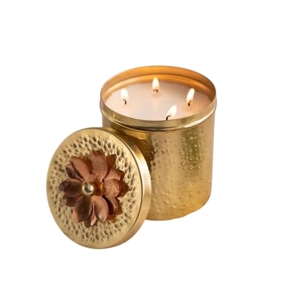 Set Of 2 Metal Candle Jars Copper And Brass Finish Hammered Design Candle Holder Luxury Home Decor Gift In Affordable Price