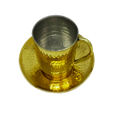 Set Of 2 Silver And Gold Color Brass Cup And Saucer Set Prime Quality Customized Size Cup And Saucer Set From India