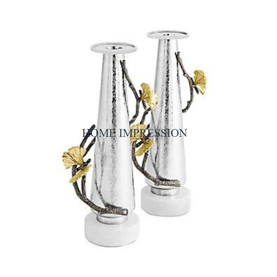 Set of 2 Stainless Steel Hammered Mirror Polished Candle Holders Black and Gold Butterfly Designer Table Luxury Candle Holders
