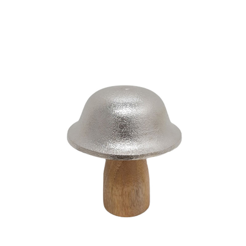 Set of 3 Aluminum & Wood Mushroom Nickel & Natural Color Small Size Classic Design Sculpture for Garden Decoration