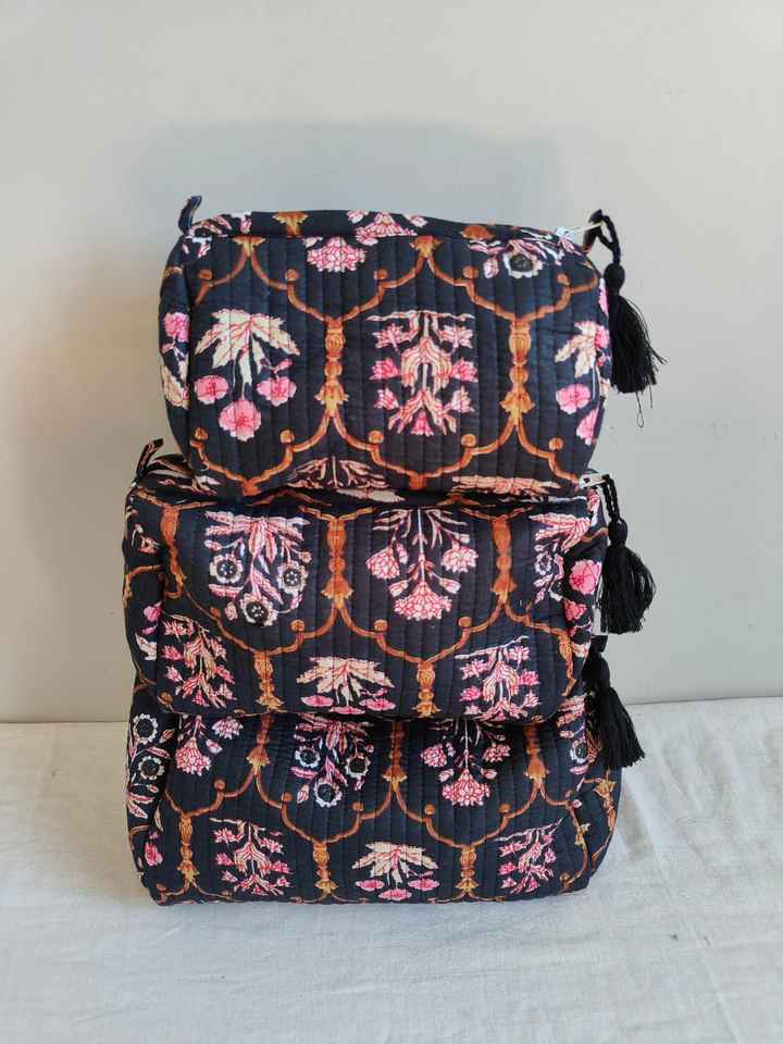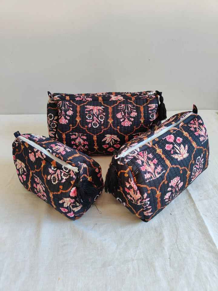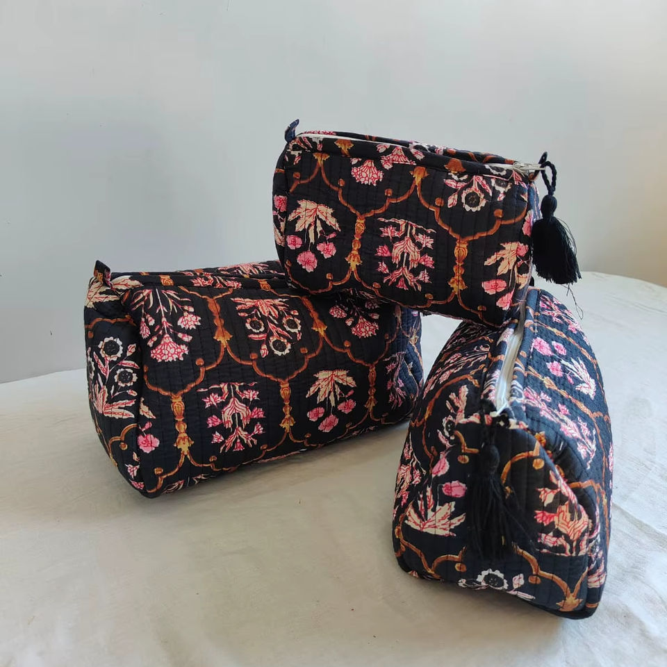 Set Of 3 Cotton Quilted Makeup Bag & Organizer Cotton Toiletry Case Travel Bag Floral Print Makeup Bag Toiletries Organizer Bag