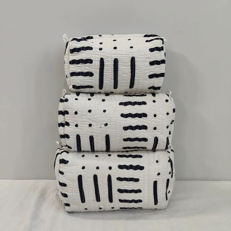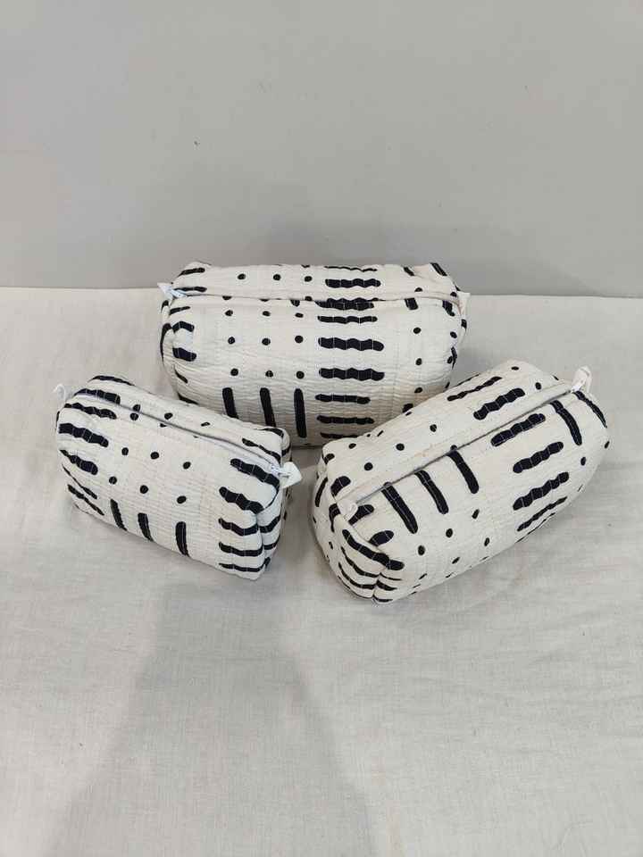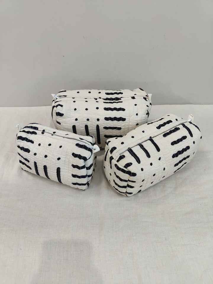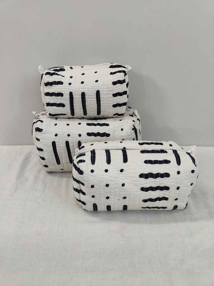 Set Of 3 Cotton Quilted Makeup Bag & Organizer Cotton Toiletry Case Travel Bag Printed Makeup Bag Toiletries Organizer Bag