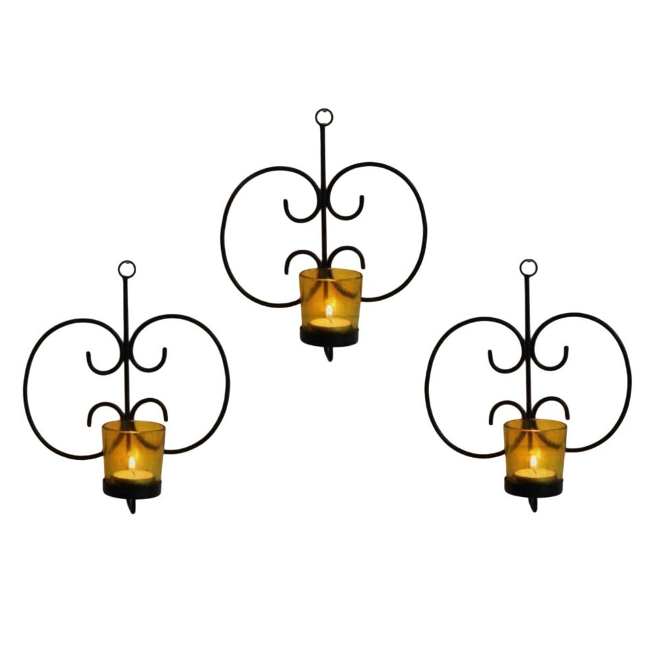 Set Of 3 Creative Iron Wall Sconce Tealight Candle Holders Black Metal Hanging Wall Art Decor For Home Living Room