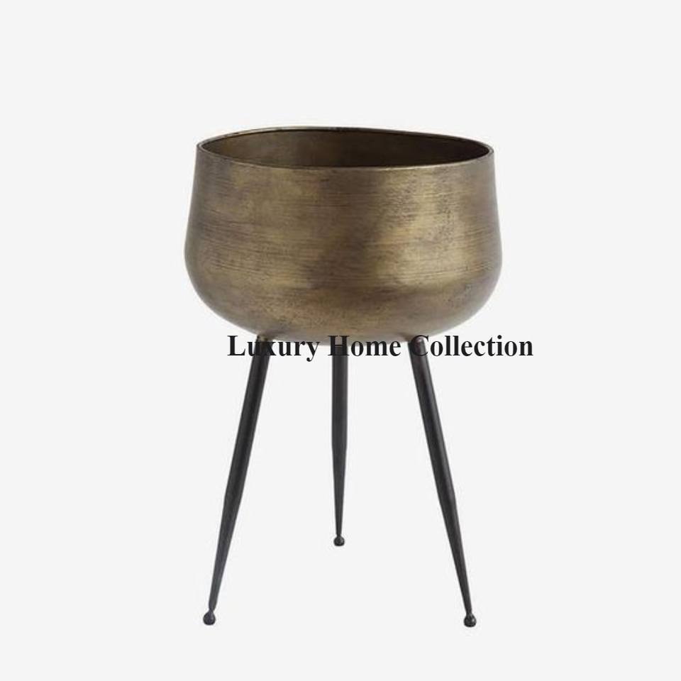 Fancy Set of 3 Decorative Creative Planters and Pots White Color Top and Golden Shiny Color Frame Round Shape and Tall Size