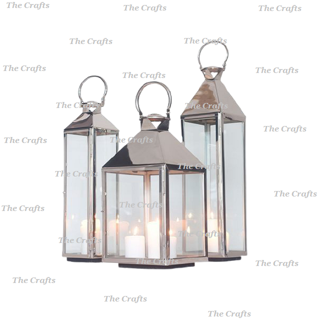 Glass And Metal Silver Color Hanging Lantern Set Of Three Different Sizes Lantern For Home Decor Accessories