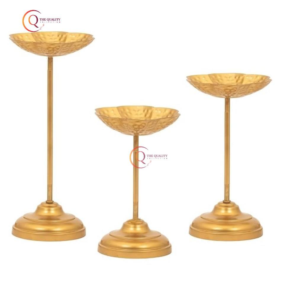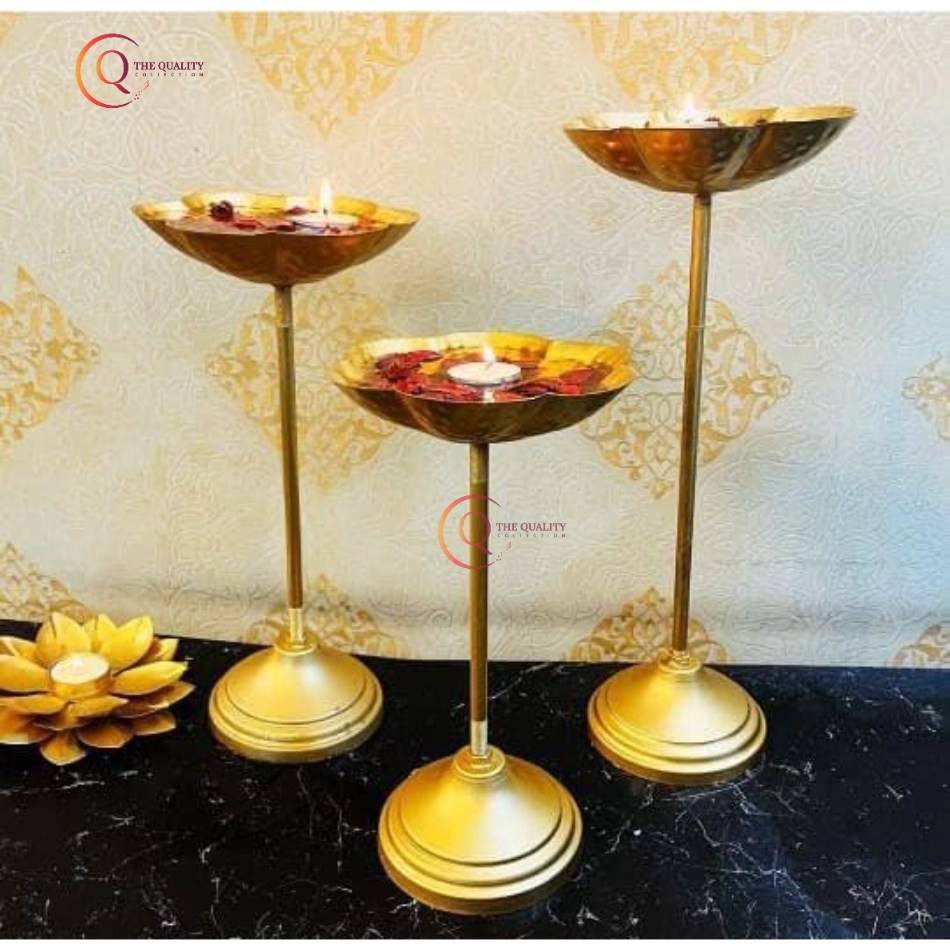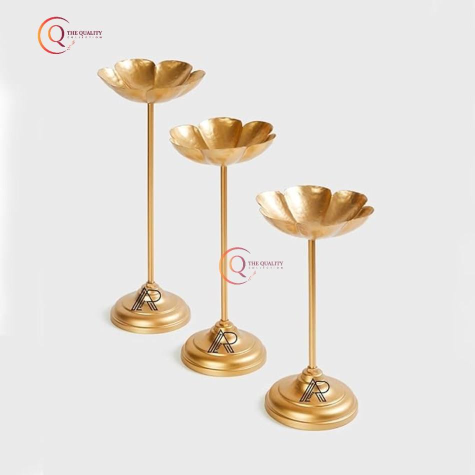 Set Of 3 Flower Designing Gold Color Home and Events Decorative Candle Jar Unique New Style Indoor Lightening Candle Holders