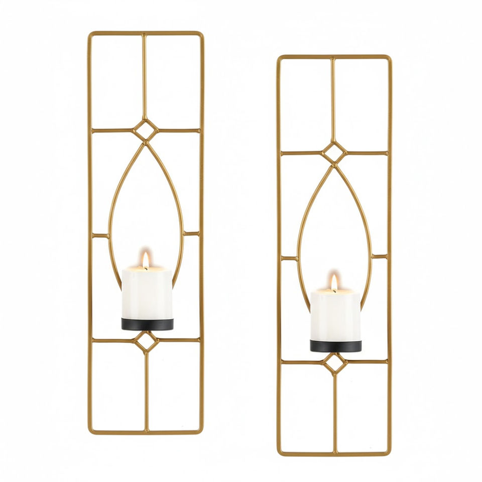 Set Of 3 Golden Iron Wall Sconce Candle Holder Hanging Metal Tealight Candle Holder For Home Decor Living Room Party Wall Accent