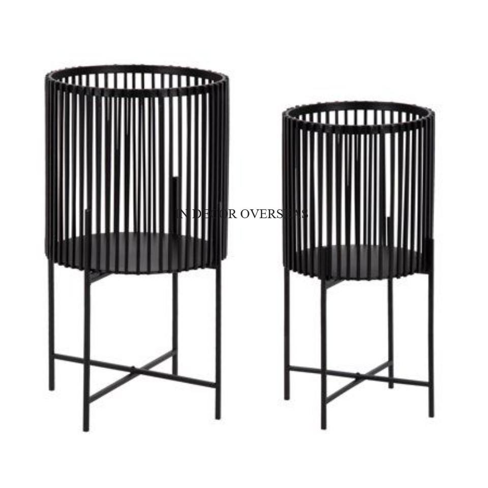 Set Of 3 Hammered Texture Black Color Powder Coated Heavy Duty Metal Flower Pots And Planters For Home & Garden Decor Supplies