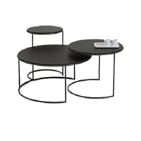 Set Of 3 Iron And Black Marble Coffee Table Marvelous Design Round Shape Side Table For Living Room In India