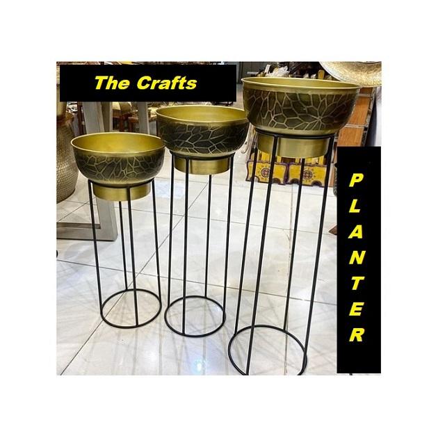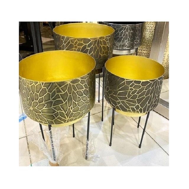 Set Of 3 Planter In Iron Gold And Black Color Flower Pot Planter With Iron Stand For Garden Decor Accessories