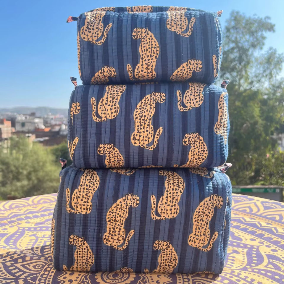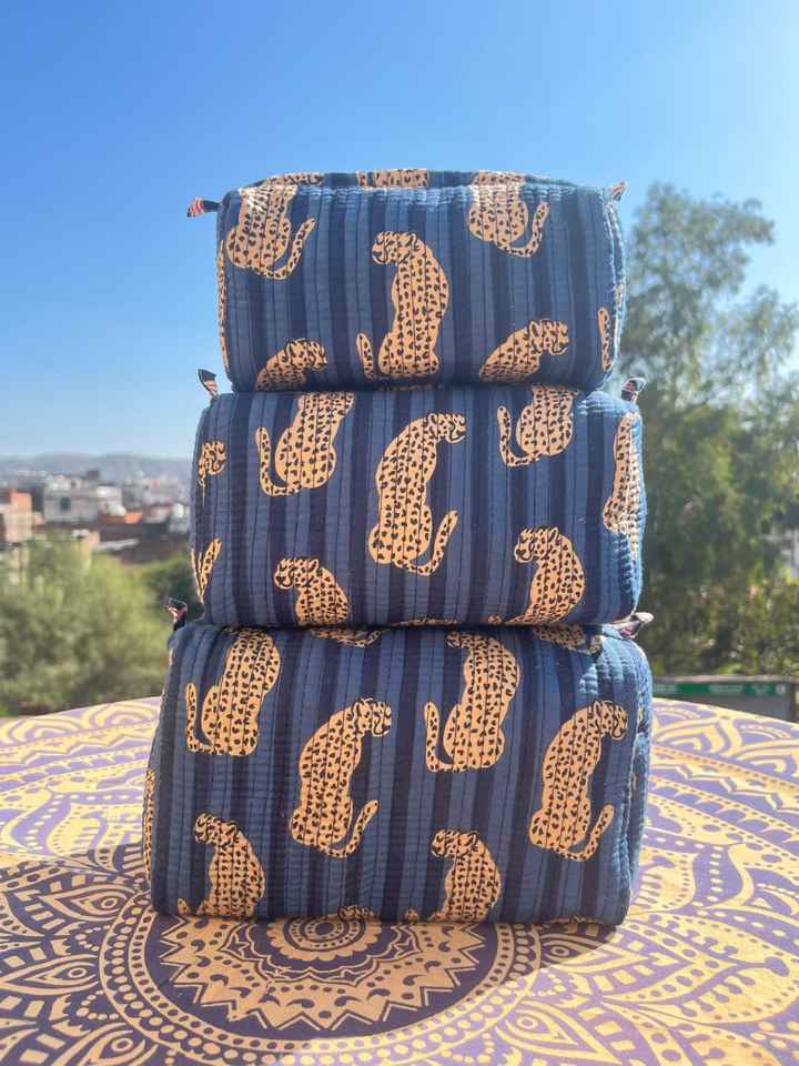 Set Of 3 Quilted Cotton Leopard Printed Toiletry Bags Zipper Block Fashion Bag Set Tassel Indian Multifunction Wholesale Rate