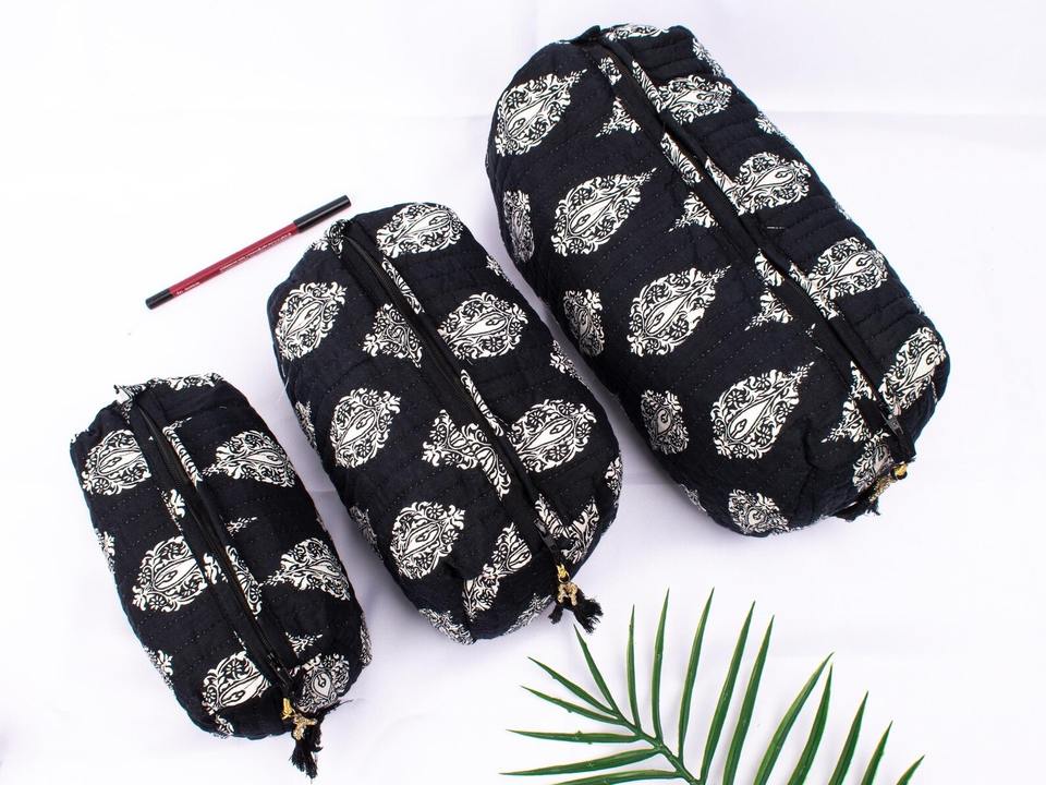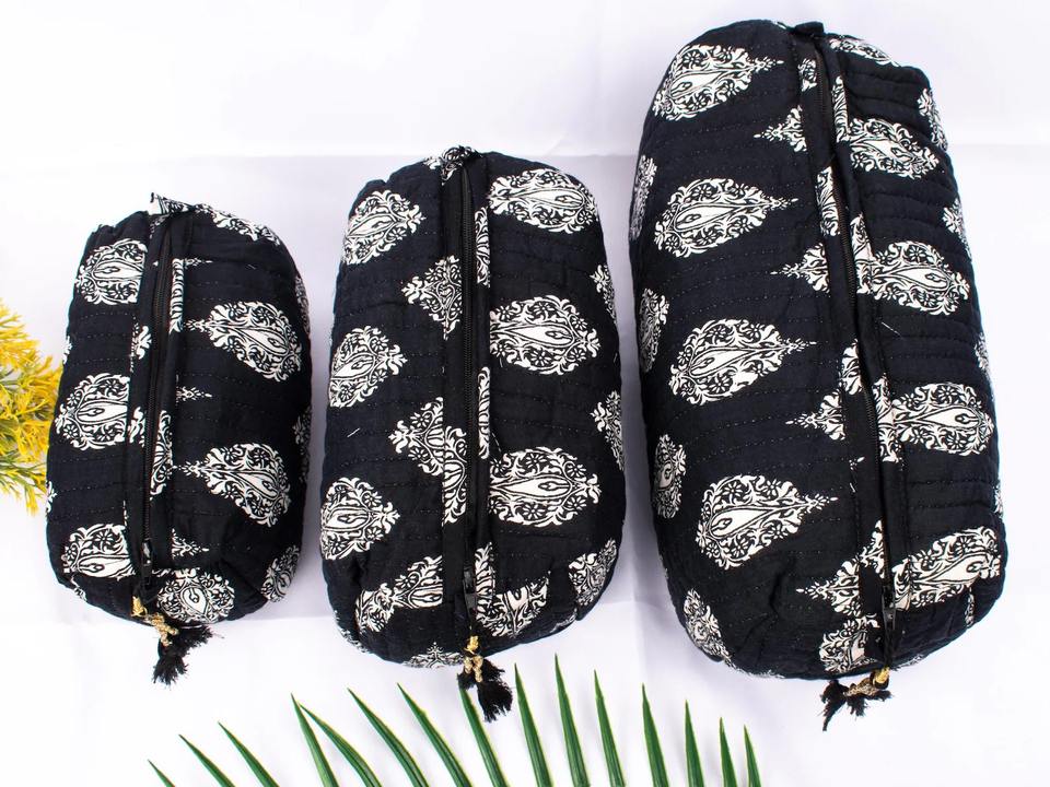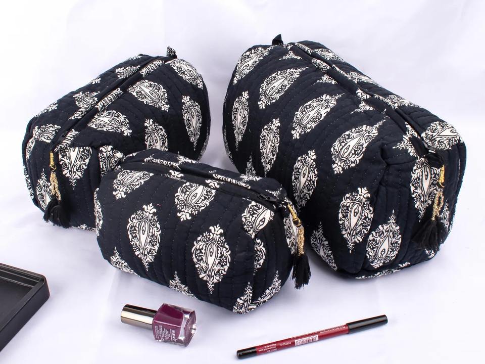 Set Of 3 Quilted Toiletry Bag, Block Print Make Up Bag, Cosmetic Bag - Free Shipping