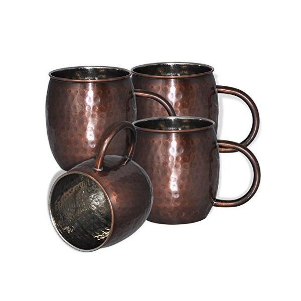 Set Of 3 Round Shape Water Drinking Mugs Handmade Copper Hammered Moscow Mule Mugs With Premium Quality