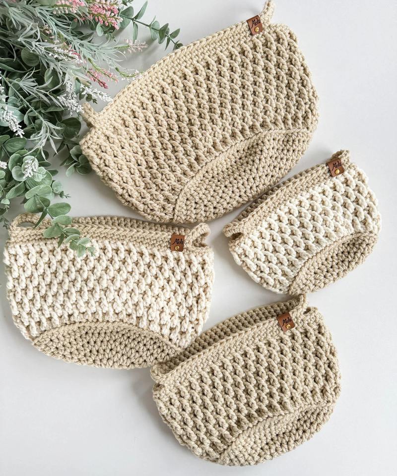 Set Of 3 White Macrame Baskets For Multi Purpose Storage Home Decor Wardrobe Organizing Laundry Display And Table Styling