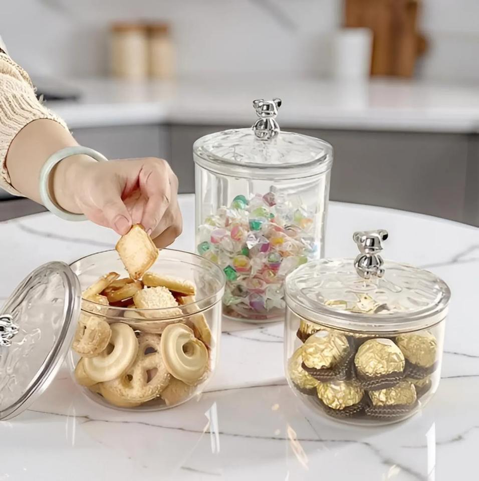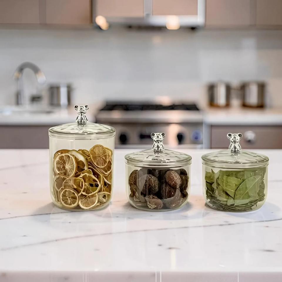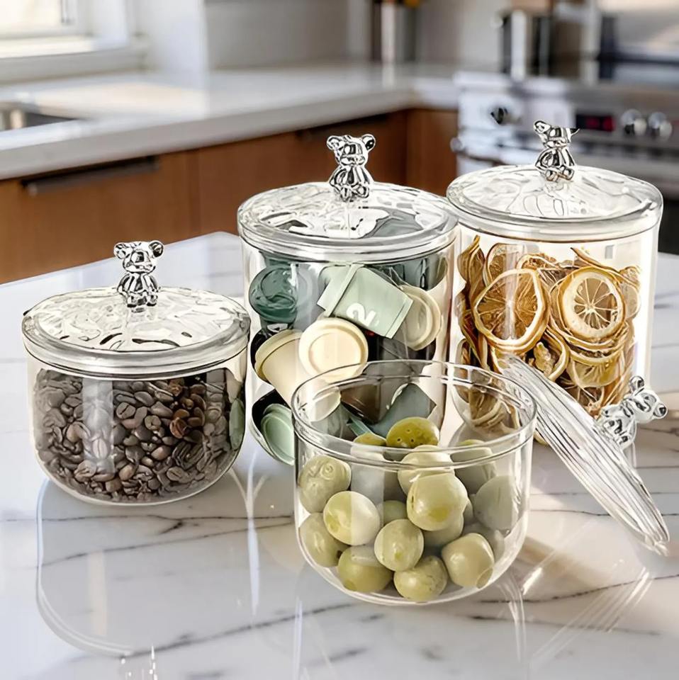 Set Of 4 Glass Containers With Teddy Bear Design Lid Cute Kitchen Storage Jar For Keeps Food Fresh And Protected From Moisture