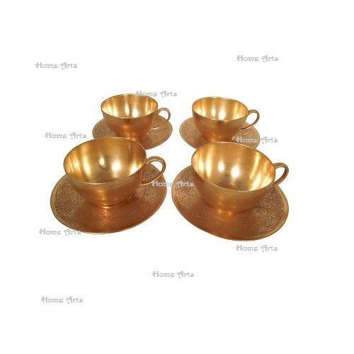 Set Of 4 Gold Color Brass Cup And Saucer Set Prime Quality Customized Size Cup And Saucer Set For Kitchen Accessories