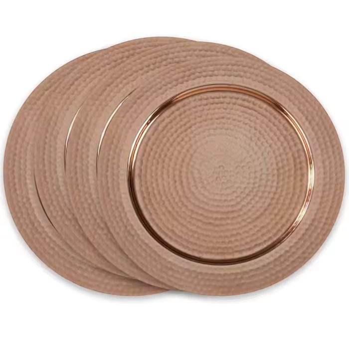 Set Of 4 Hammered Metal Golden Charger Plate for Home Hotels Wedding Table Decoration Round Shape Food Serving Dish & Plates
