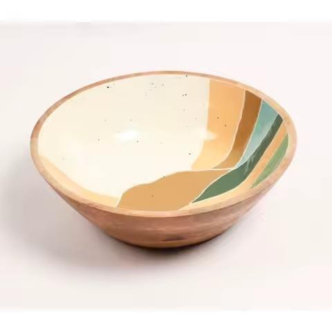 Set Of 4 Wooden Enamel Work Food and Dessert Server Ware Bowl Trending Designed Round Handmade New Style Luxury Wood Food Bowl