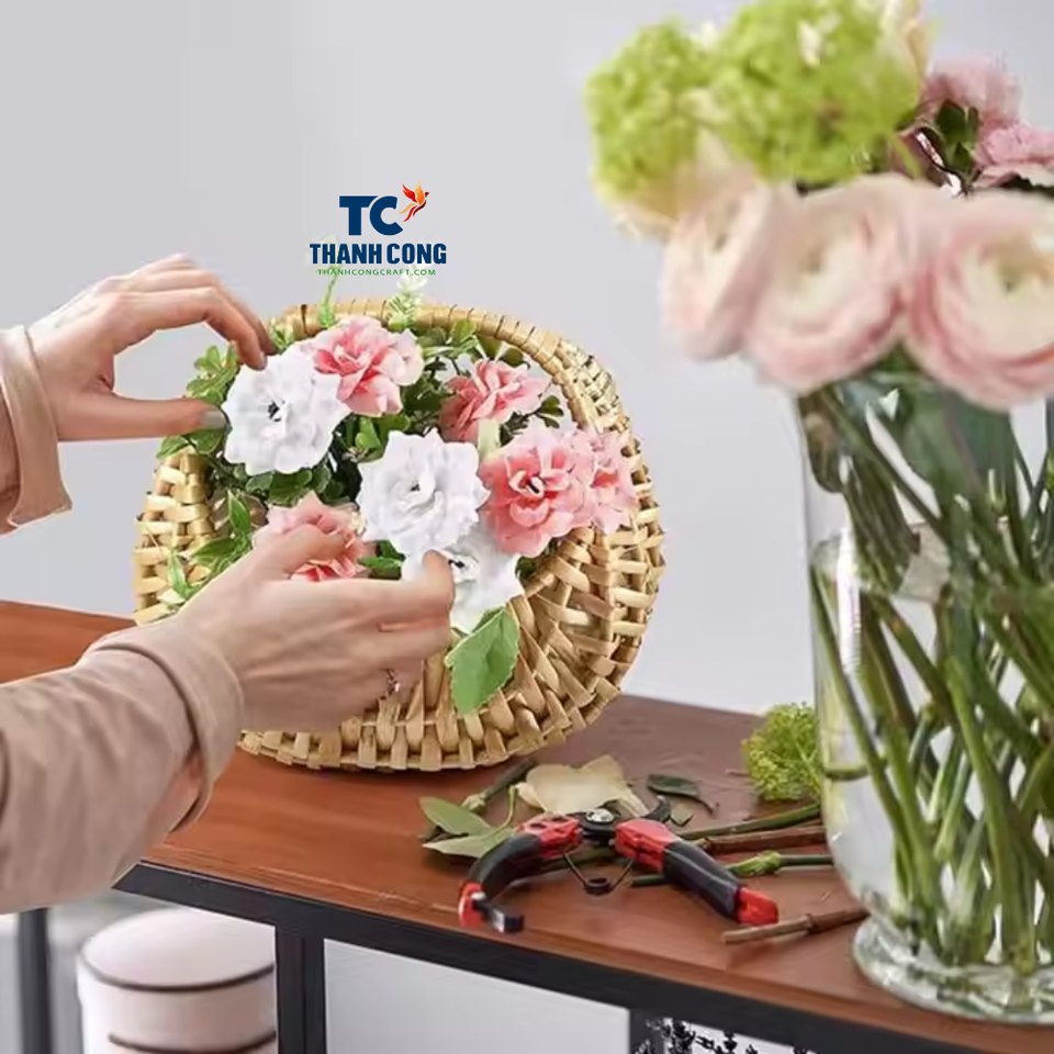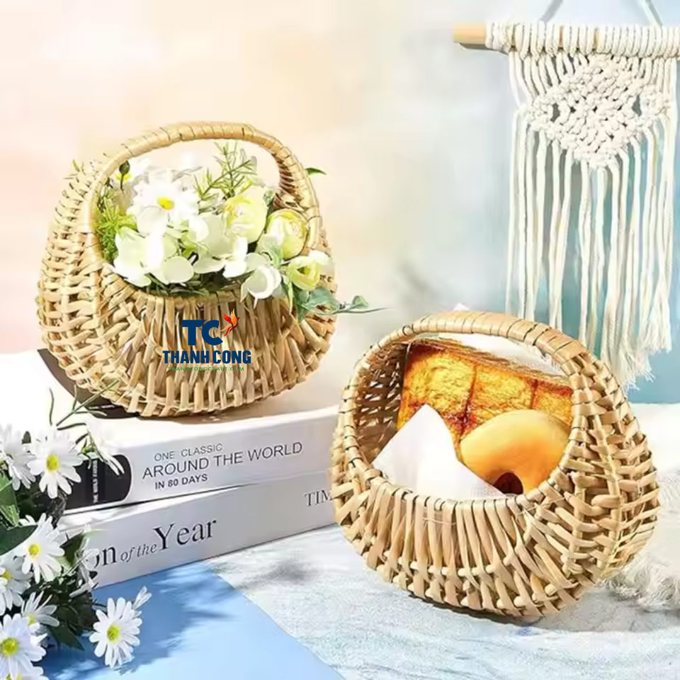 Set of 6 Pcs Half Moon Wicker Basket Handmade Rattan Basket With Handle Wedding Flower Girl Basket From Vietnam