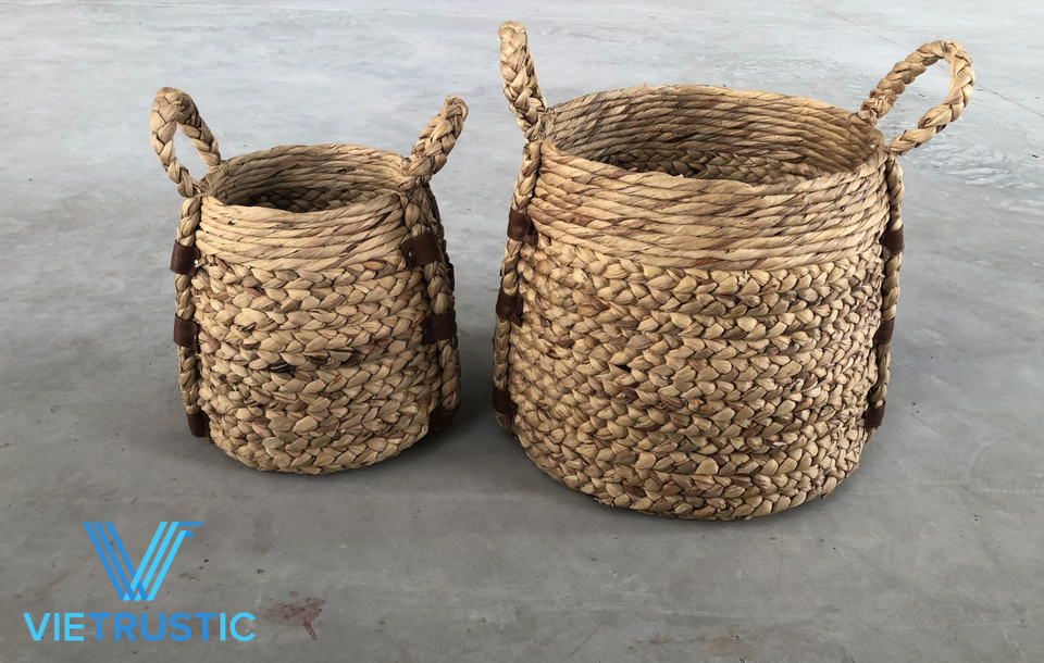 Set Of Hot Sale Large Wicker Basket With Lid Seagrass Water Hyacinth Jute Basket Home Organization Products Bathroom Laundry