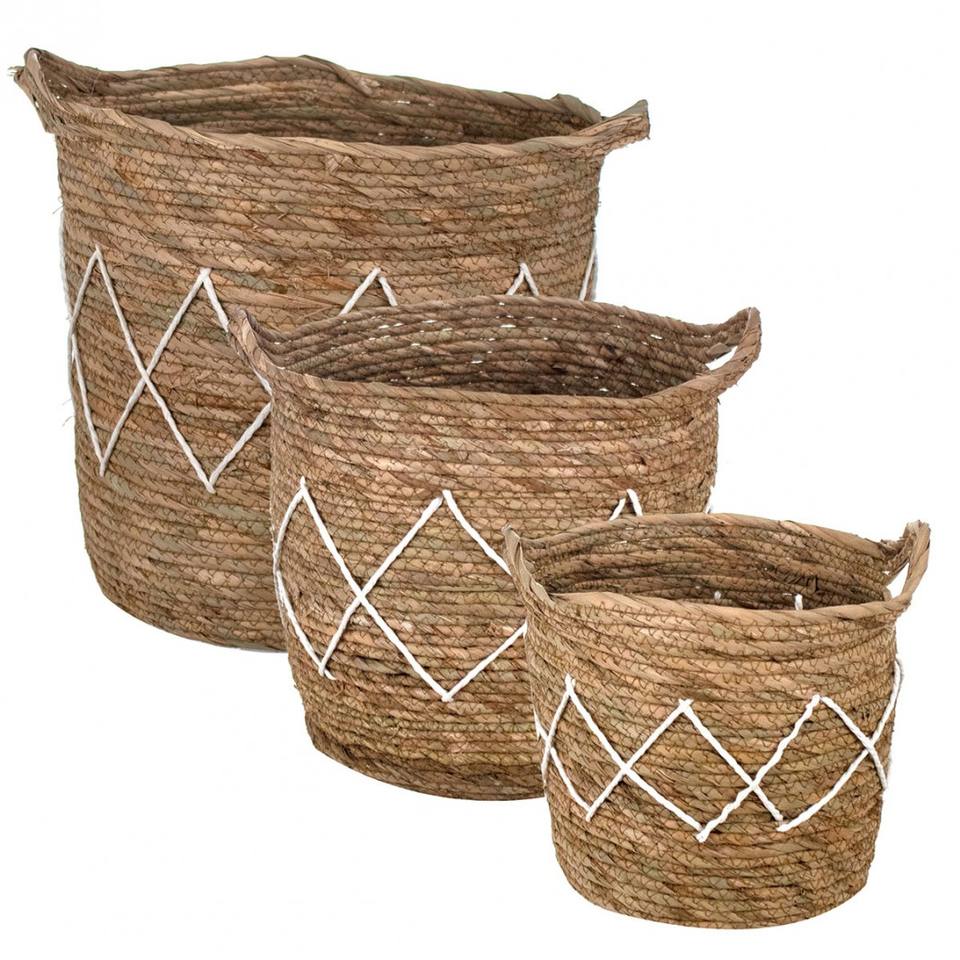Set Of New Design Wicker Plant Basket Seagrass Water Hyacinth Jute Basket Stitching Basket Pantry Organizer Laundry Bin At Home