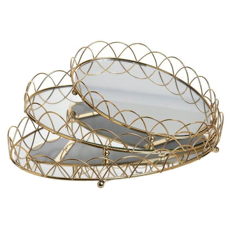 Set Three Mirror Serving Tray Modern Luxury Style Handmade Eco-Friendly High Quality Indian Origin Customized Shape Serving