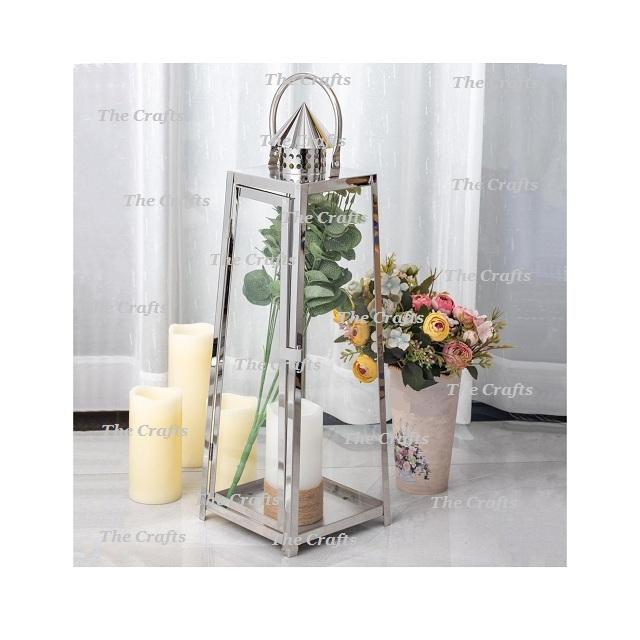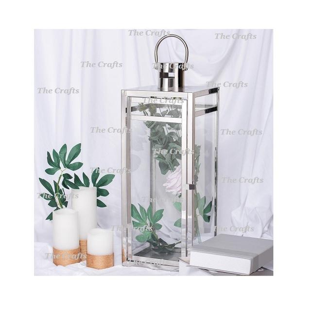 Set Of Three Square Shape Lantern In Metal And Glass Hanging Lantern For Wedding And Event Table Top Use