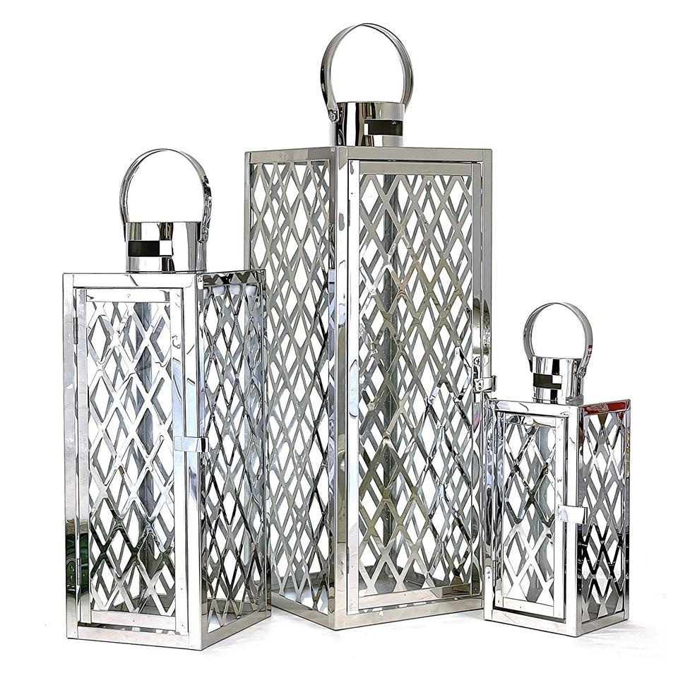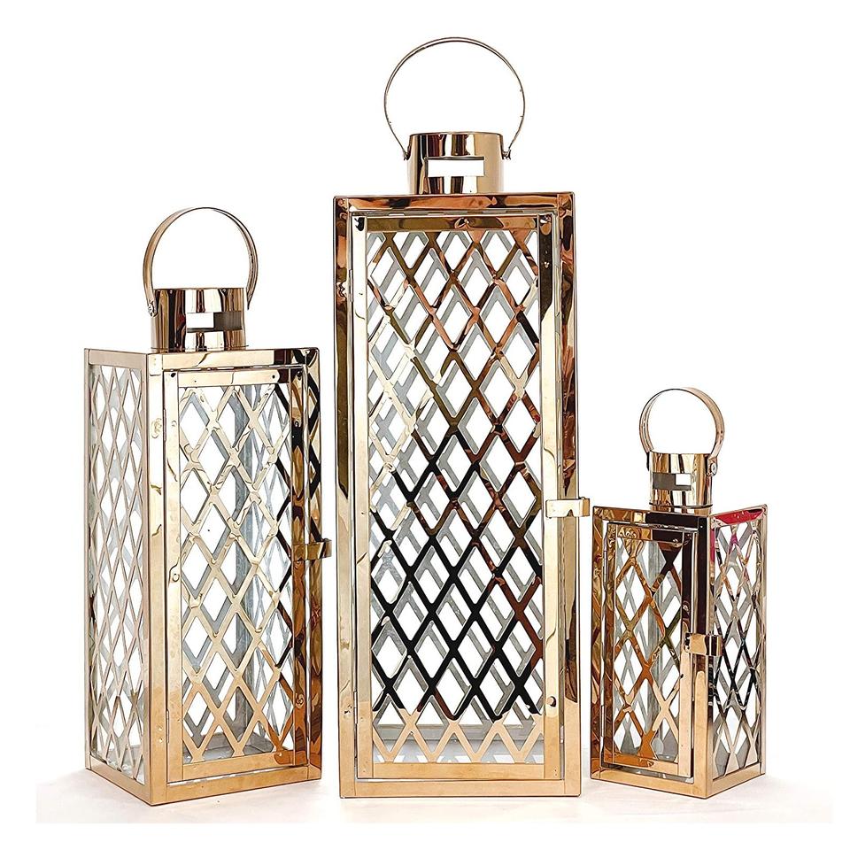 Set Of Three Triangle Shape Metal Lantern Premium Quality Handmade Designer Candle Holder Wholesale New Metal Lantern