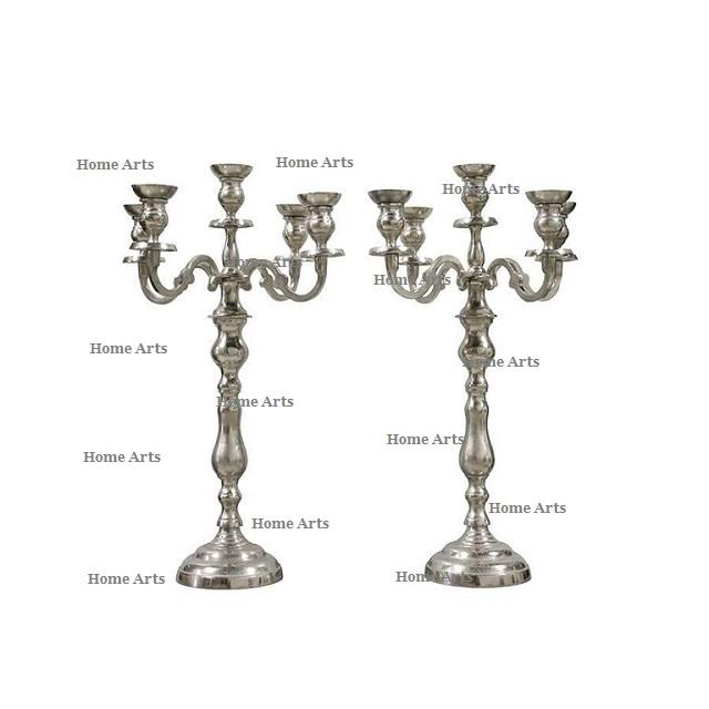 Set of 2 Customized Size & Shape Handmade Eco-Friendly Candelabra High Quality Aluminium Silver Color Wedding Candle Stand
