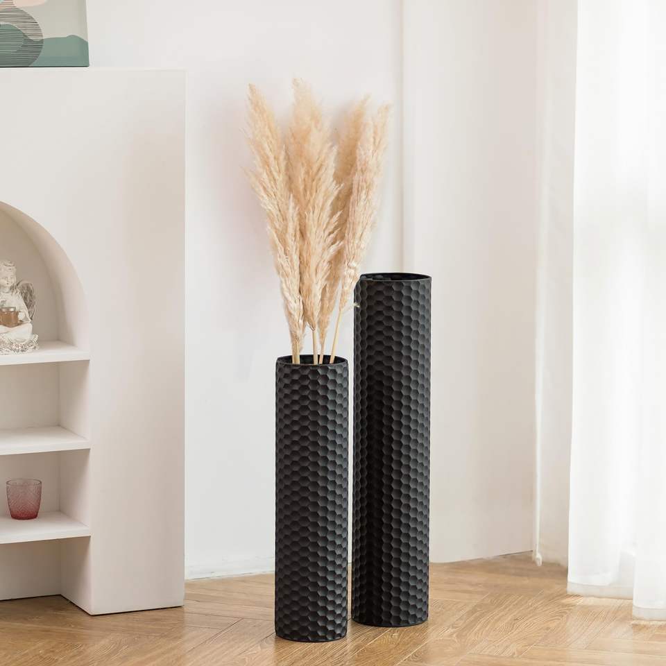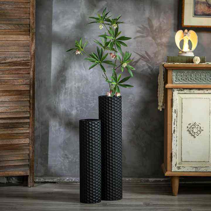Set Of Two Iron Cylindrical Flower Vases Standing Vintage Embossed Floor Vases For Living Room Decor