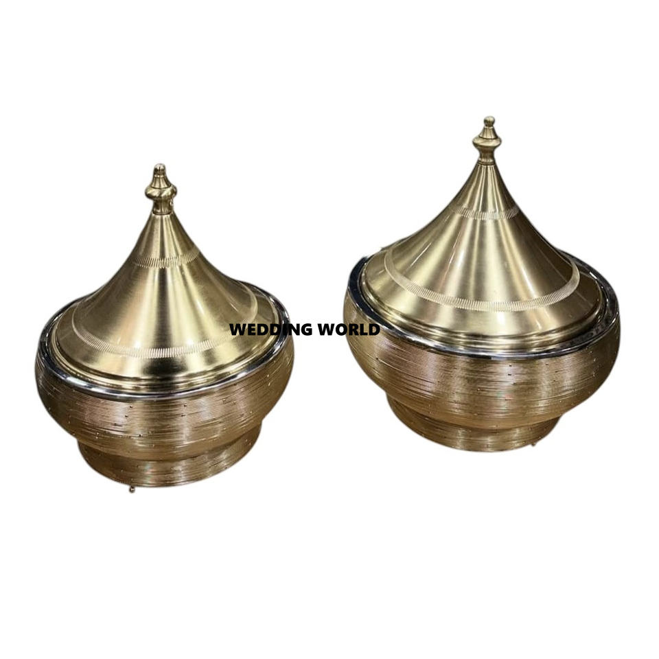 Set Of Two Stainless Steel Round Shape Metal Casseroles High Quality Handmade Stylish Table Top New Wholesale Metal Casseroles