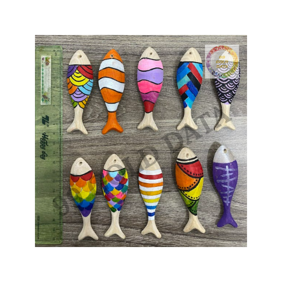 Set Of Wooden Fish Decorations For Wall Hanging Shelf Styling Or Crafting Coastal Themed Scenes