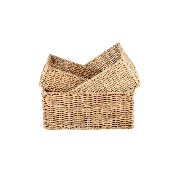 OEM/ODM Durable Handmade Eco-Friendly Water Hyacinth Rattan Multifunction Storage Baskets with Handle Set