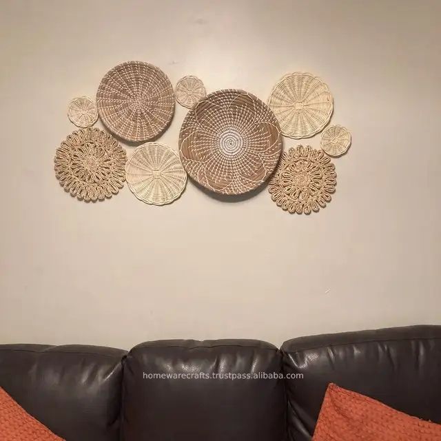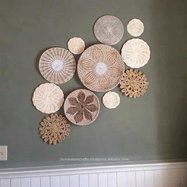 Set Straw Woven Plates Seagrass Wall Hangings Baskets Decorations Wicker Items Handmade Handicrafts Products for Home Boho Arts