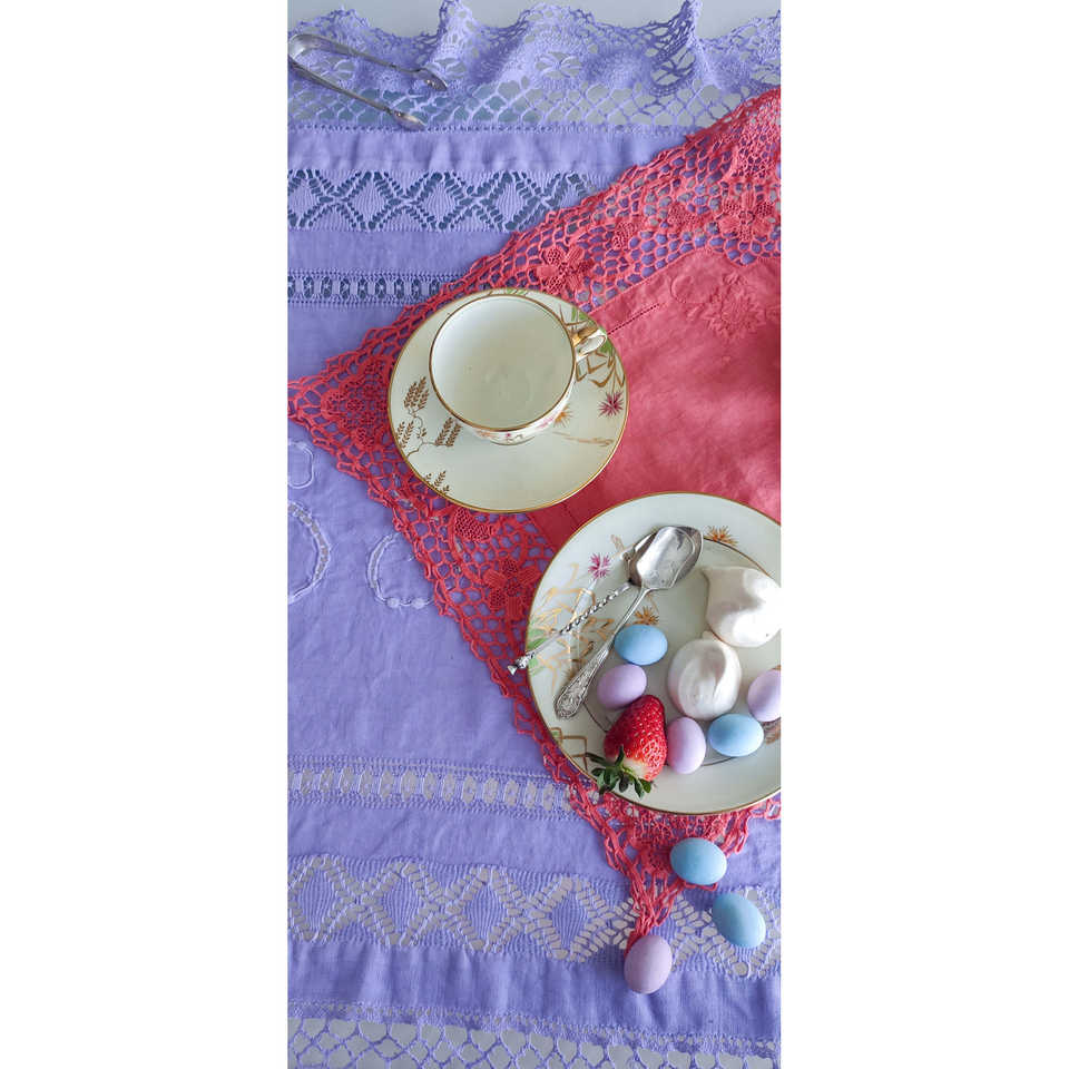 Daniele F. Set Three Eco-Friendly Burano Lace Doilies Coral Placemats Wood Polyester Dining Room Food Serving Ornamental Pattern