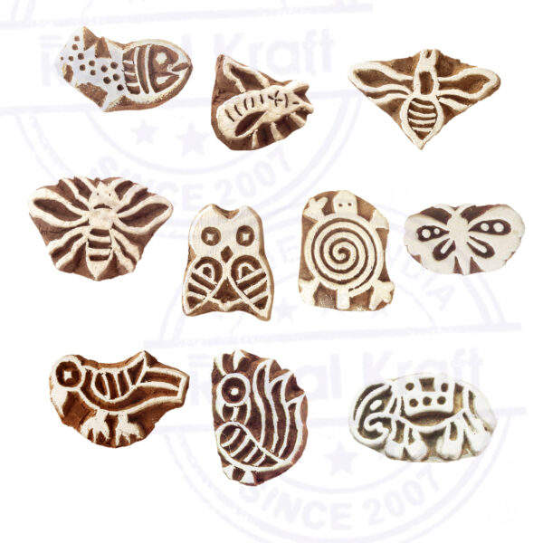 Set of 10 Beautiful Small Animal Design Tattoo Print Wood Stamps