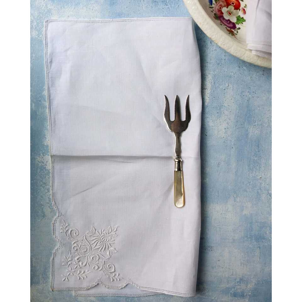 Set of 10 Linen Dinner Napkins Hand-Embroidered Chrysanthemum Table Cloth Napkin for Dining Use
