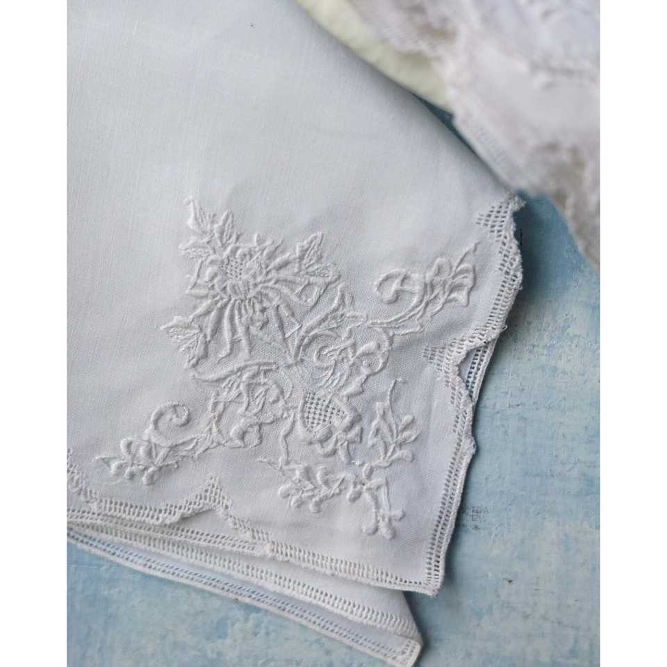 Mirellas Set of 10 Linen Napkins Embroidered Flower and Drawn Hem Cotton Dinner Cloth Napkins for Party Use