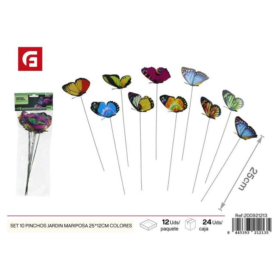 Set of 10 butterfly garden spikes, 25x12 cm, in colors - Garden decorations