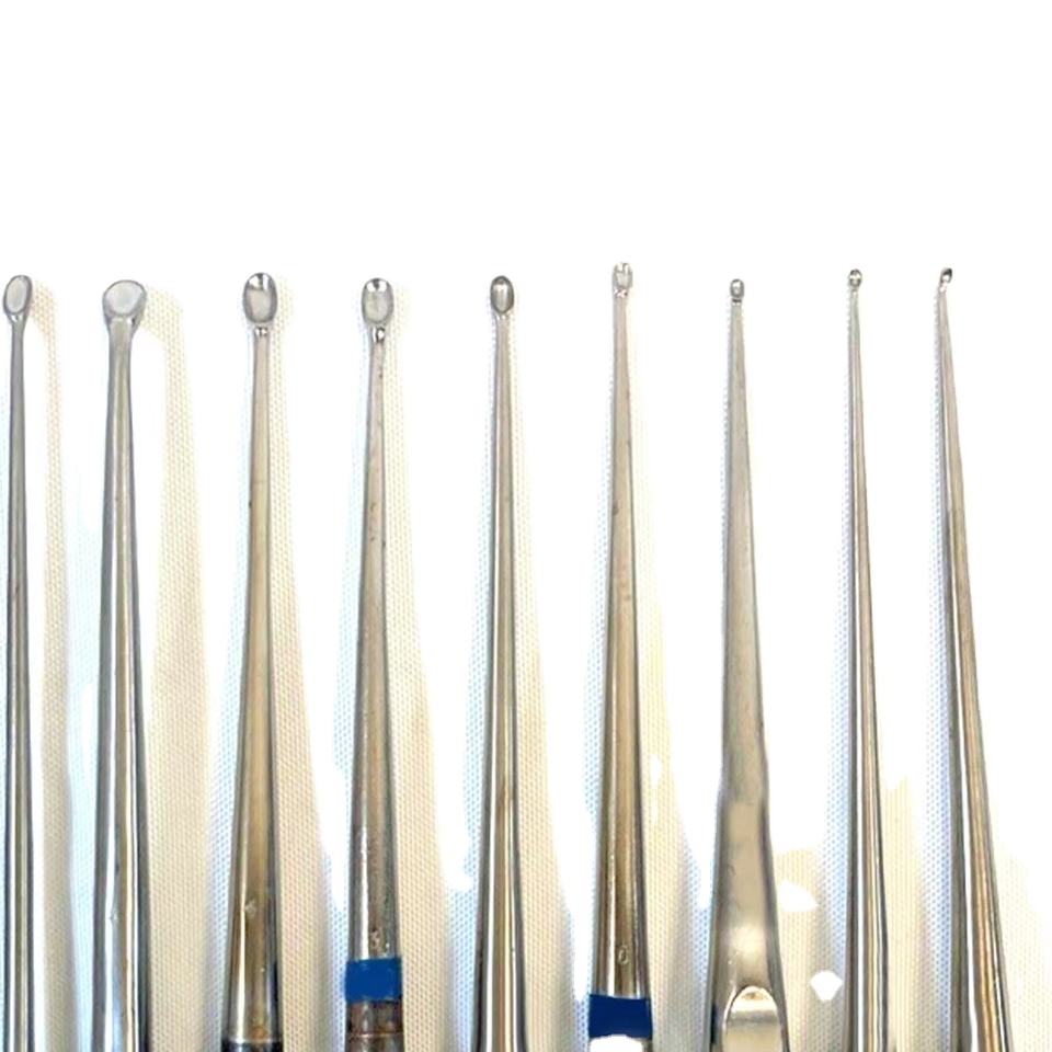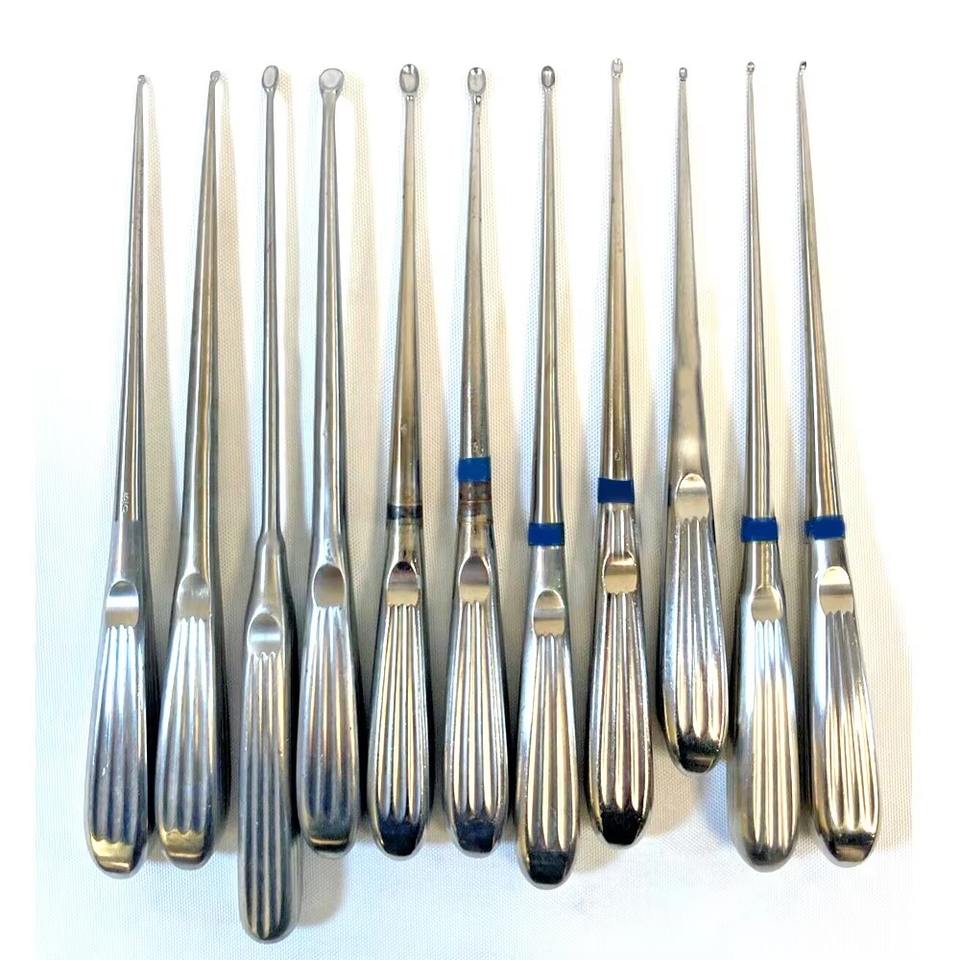 Set of 11 Stainless Steel Bone Curettes Straight & Angled Orthopedic Neuro Bone Surgical Sets Sutur Kit Medic Instrument