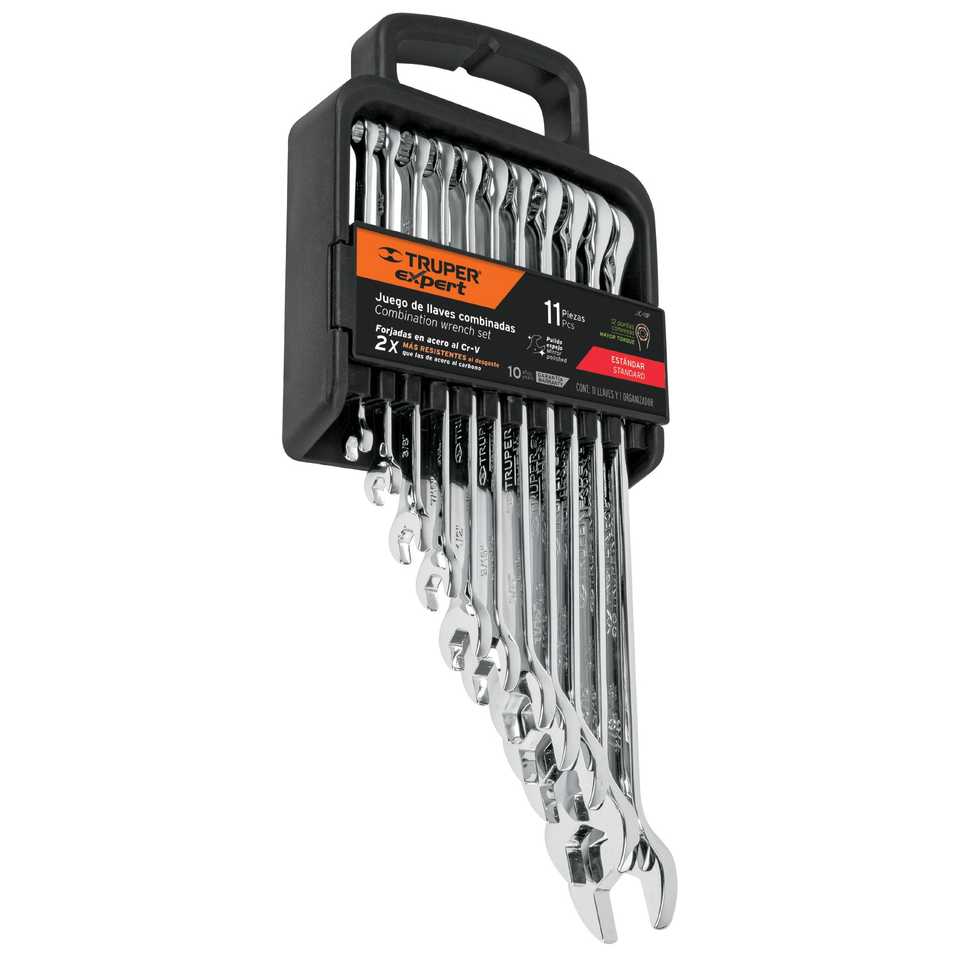 Set of 11 extra-long polished combination wrenches, standard, EXPERT, 15780