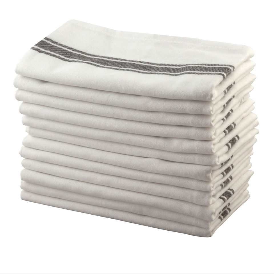 Set of 12 100% Cotton Kitchen Cleaning Cloths with Woven Square Stripe Pattern Home Use Kitchen Towels