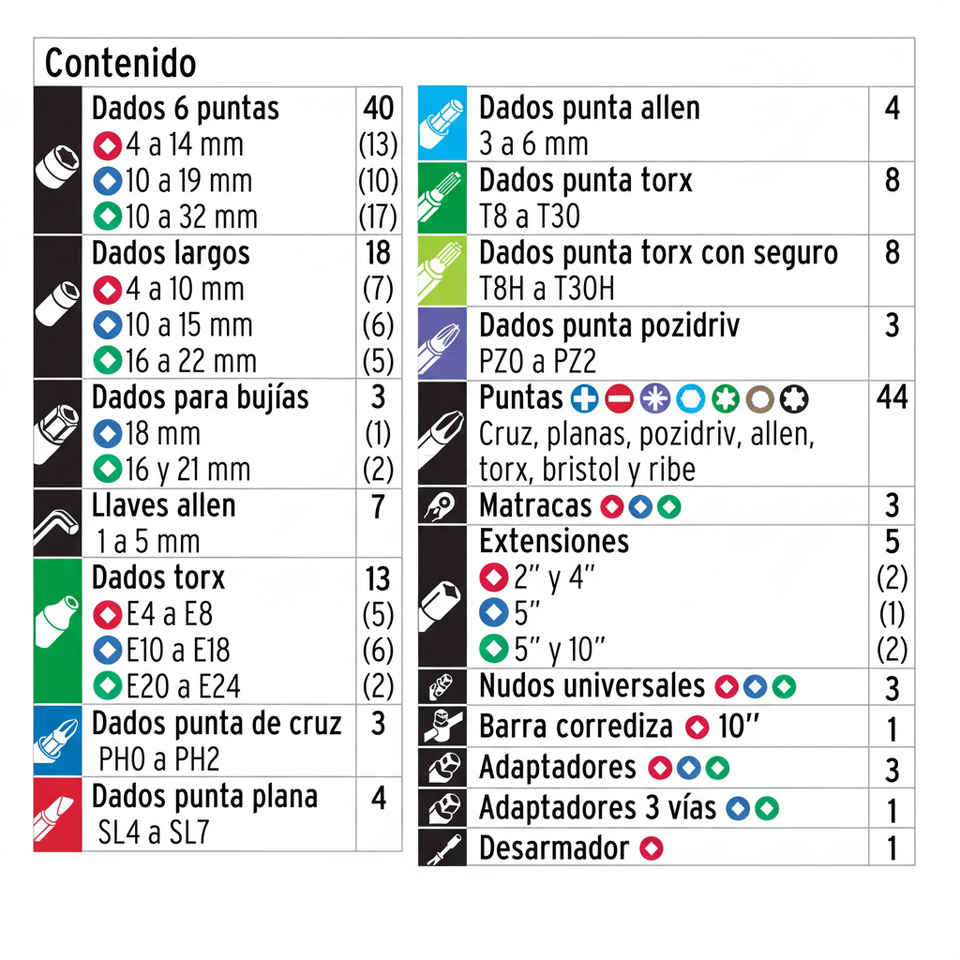 Set of 172 Mechanics Vehicle Tools 1/4' 3/8' 1/2' mm Single Unit