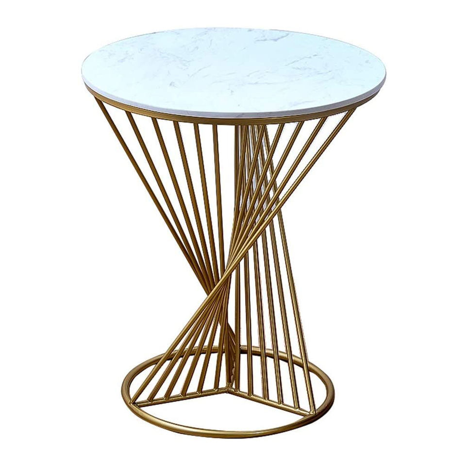 Set of 2 Accent Round Golden Tables with Marble Top Luxurious Design Metal Bed Side Table Metal Furniture Antique Coffee Table