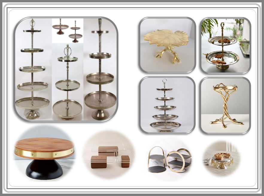 Set of 2 Aluminium And Marble Cake Stand Handmade Customized Shape Size Cake Snacks Stand For Top Selling