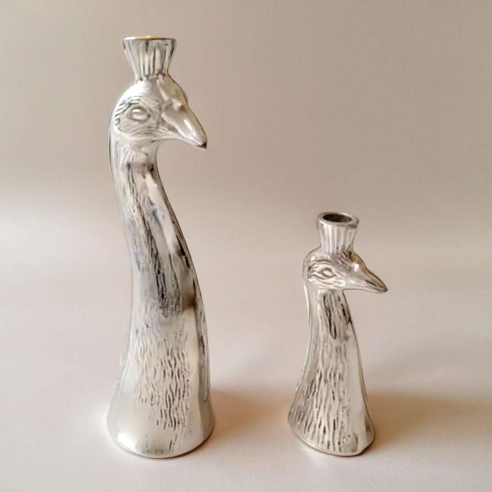 Set of 2 Aluminium Bird Design Metal Candle Holders